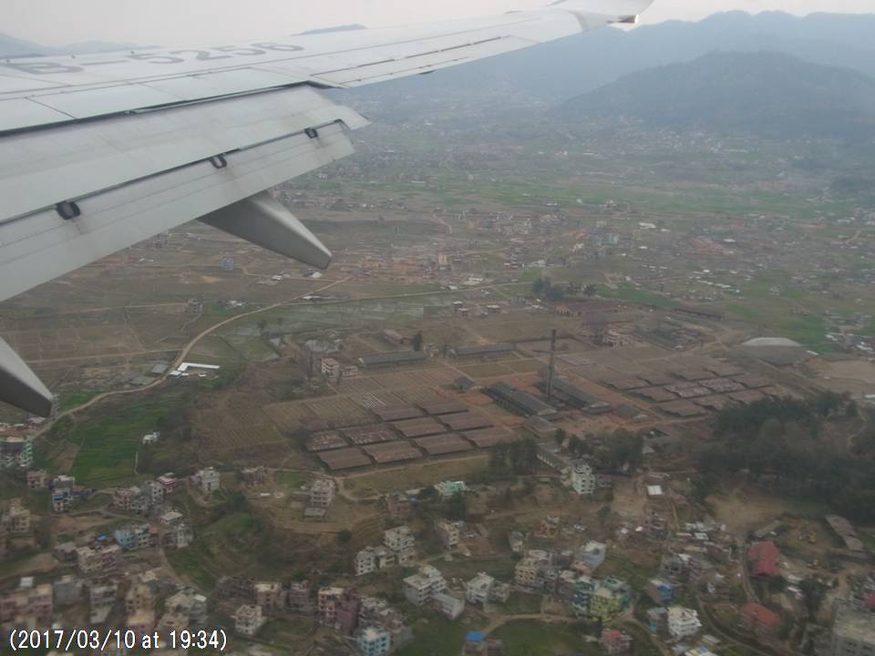カトマンズまでの飛行機からヒマラヤを眺めるのが楽しみであったが、3月10日は、どこまでいけども厚い雲が続き、残念ながら、ヒマラヤを望むことはできなかった(写真5)。