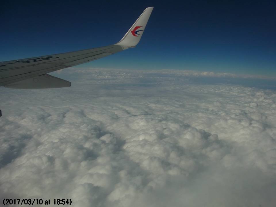 写真5 昆明・カトマンズ間は雲また雲が分布し、ヒマラヤが隠されていた。