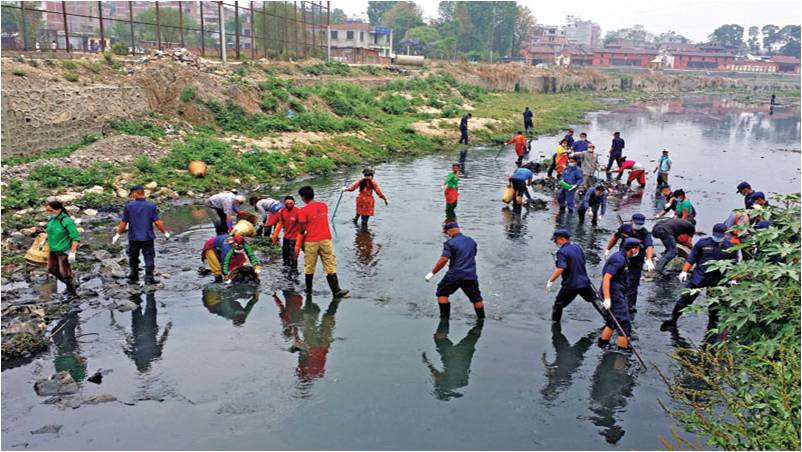 写真14 バグマティ川浄化活動をする人たち(Himalayan Times; March 11, 2017)