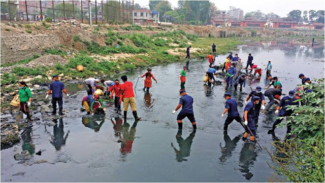 写真13 バグマティ川浄化活動をする人たち(Kathmandu Post; 2017-03-11)。