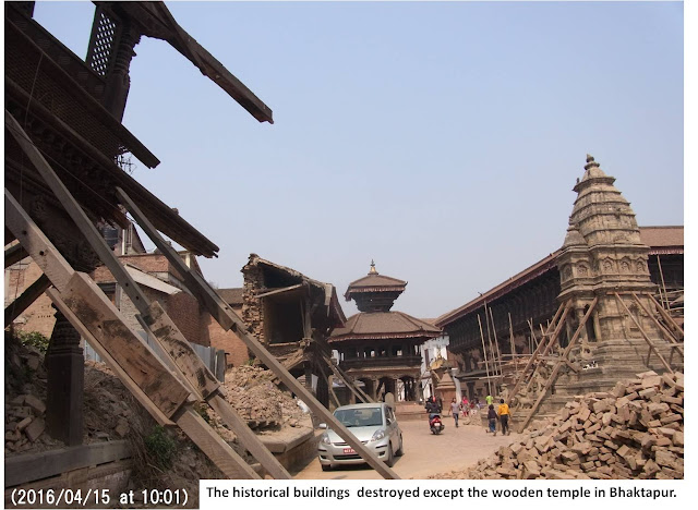 以上のように、ネパールでは氷河と森林と言う貴重な資源を失いつつある中で、第3の極地(Third Pole)と呼ばれるヒマラヤのネパールに2015年の地震災害が発生しました。現在も1年前の災害状況そのままの地域があり(写真5)、復興はなかなか進んでいないのが現状です(*5)。今回の講義期間中は、2015年地震の1周年にあたりましたので、鉱山地質局(DMG)と日本国際協力機構(JICA)による2015年 地震に関する2つの国際会議が開かれ(*6)、ヒマラヤ地震博物館(*7)の必要性を報告しました。私はかつてポカラの国際山岳博物館で仕事をしましたの で、若い学生たちにヒマラヤ環境の実態と問題点を示す必要性を感じていましたので、ヒマラヤ地震博物館でもヒマラヤの地震災害の問題点を、ネパールの将来 を背負っていく若い人たちに提示することが必要だと考えています。現在、カトマンズ大学でネパールヒマラヤの環境変化を講義しているのもその一環です。